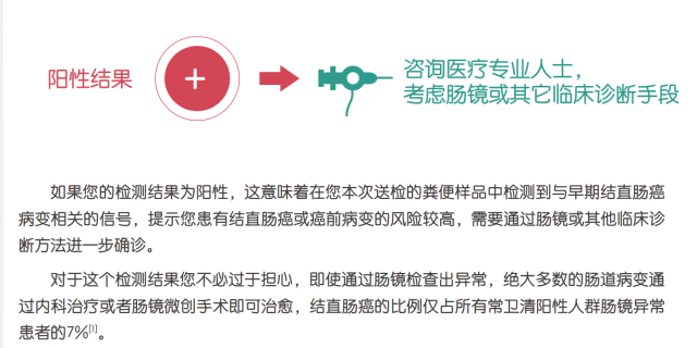 古先生重新查阅检测报告后发现,在阳性结果的解读中,报告上写着:对于阳性检测结果不必过于担心……结直肠癌的比例仅占所有常卫清阳性人群肠镜异常患者的7%。